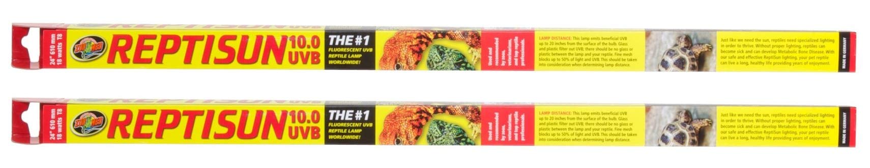 Zoo Med 2 Pack of T8 ReptiSun 10.0 UVB, 24 Inch, 17 Watt, Reptile Habitat Lighting
