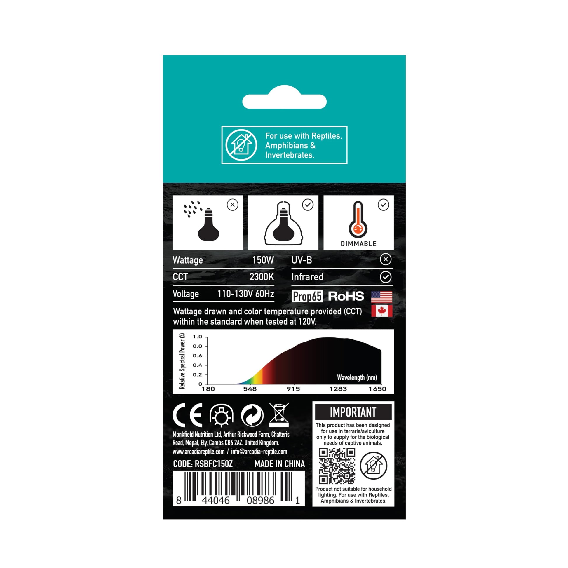 Arcadia Golden Sun 150W Reptile Basking Flood Lamp